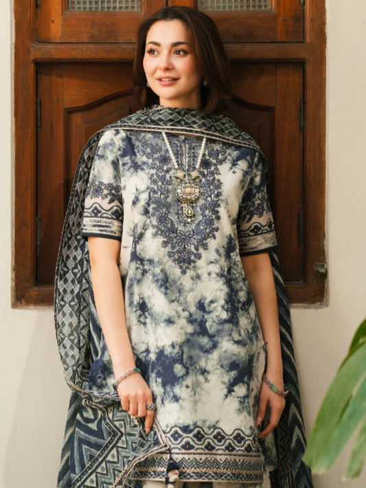 03-Piece MARIA B – M Print Lawn Embroidered Suit Stitched