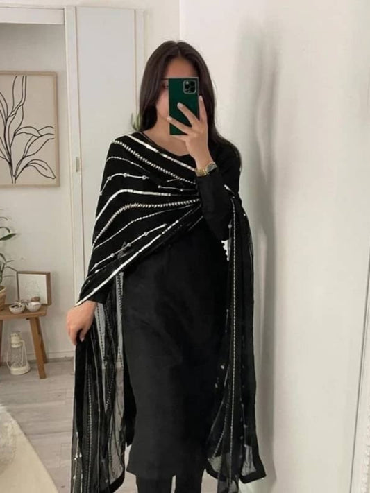 3 Piece Semi Pure Chiffon Suit with Net Dupatta
