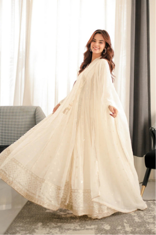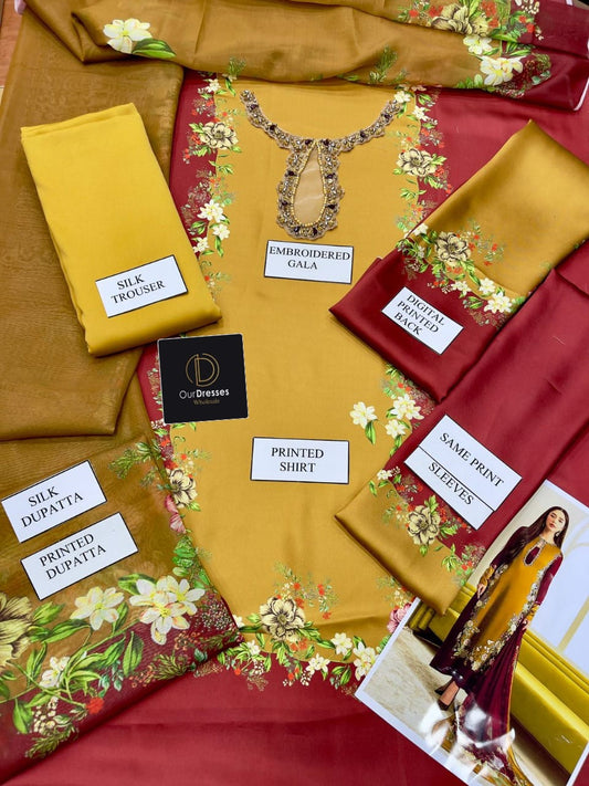 03-Piece Heavy Embroidered Organza Silk Suit Ready To Wear